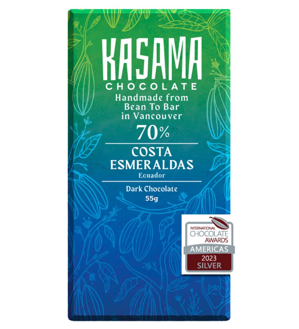 The beans for this bar come from a family owned and operated farm in northern Ecuador. They grow on lush hills overlooking the ocean in a beautiful, beach-laden part of the country appropriately named Costa Esmeraldas (the Emerald Coast). ‘Arriba Nacional’ cacao has been coveted for centuries (millennia even!) and is called 'the pride of Ecuador'. It's easy to understand why - this chocolate is smoooooooooth and marries blackberry and cherry fruit flavours with bourbon-y notes of vanilla, oak, dark butterscotch and roasty char. Despite the robust flavours the bar maintains a fresh, fruity approachability and silky-smooth tannins.