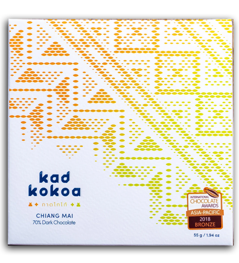 This bar is made with organic sugar and organic cacao beans from a farm belonging to the makers. It's located in Pa Pae, a village in the unbelievably beautiful Mae Tang district in the mountains of Chiang Mai. Although grown in Thailand's north, this bar still exhibits the coconut-like undertones and texture of its southern siblings, albeit with more acidity, earthiness, and tarter fruit profile more similar to plums. It's a very well-balanced flavour profile and solid all-around offering. Interestingly, the pattern on the packaging is inspired by Tung, a hanging flag that symbolizes faith and optimism. It originated in Lan Na, a former northern kingdom of the country that was ruled from Chiang Mai.
