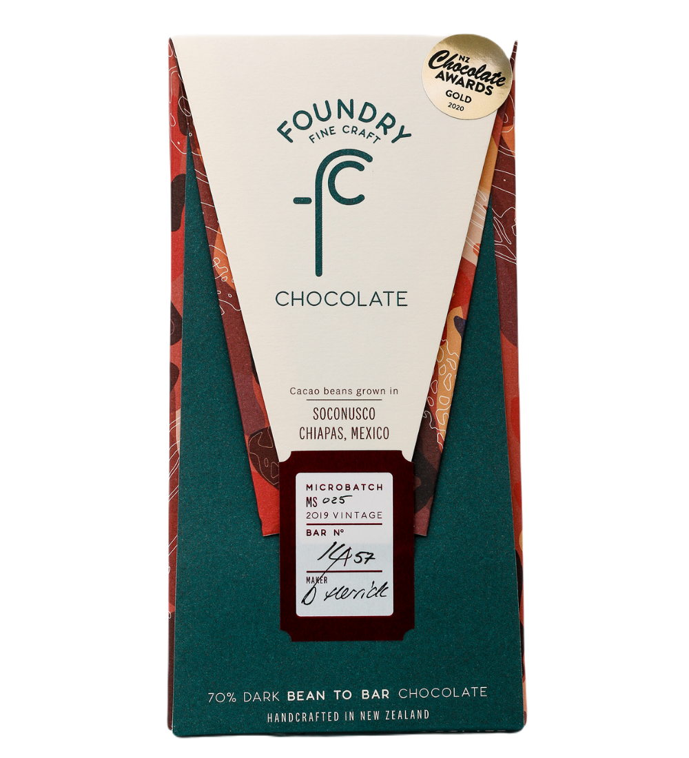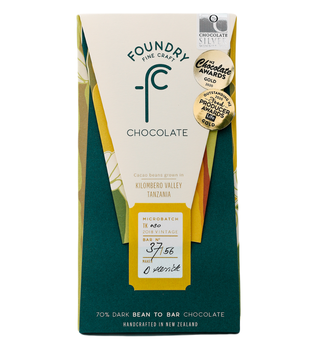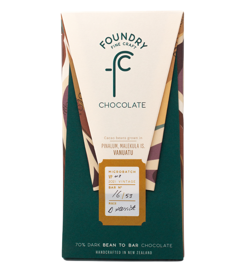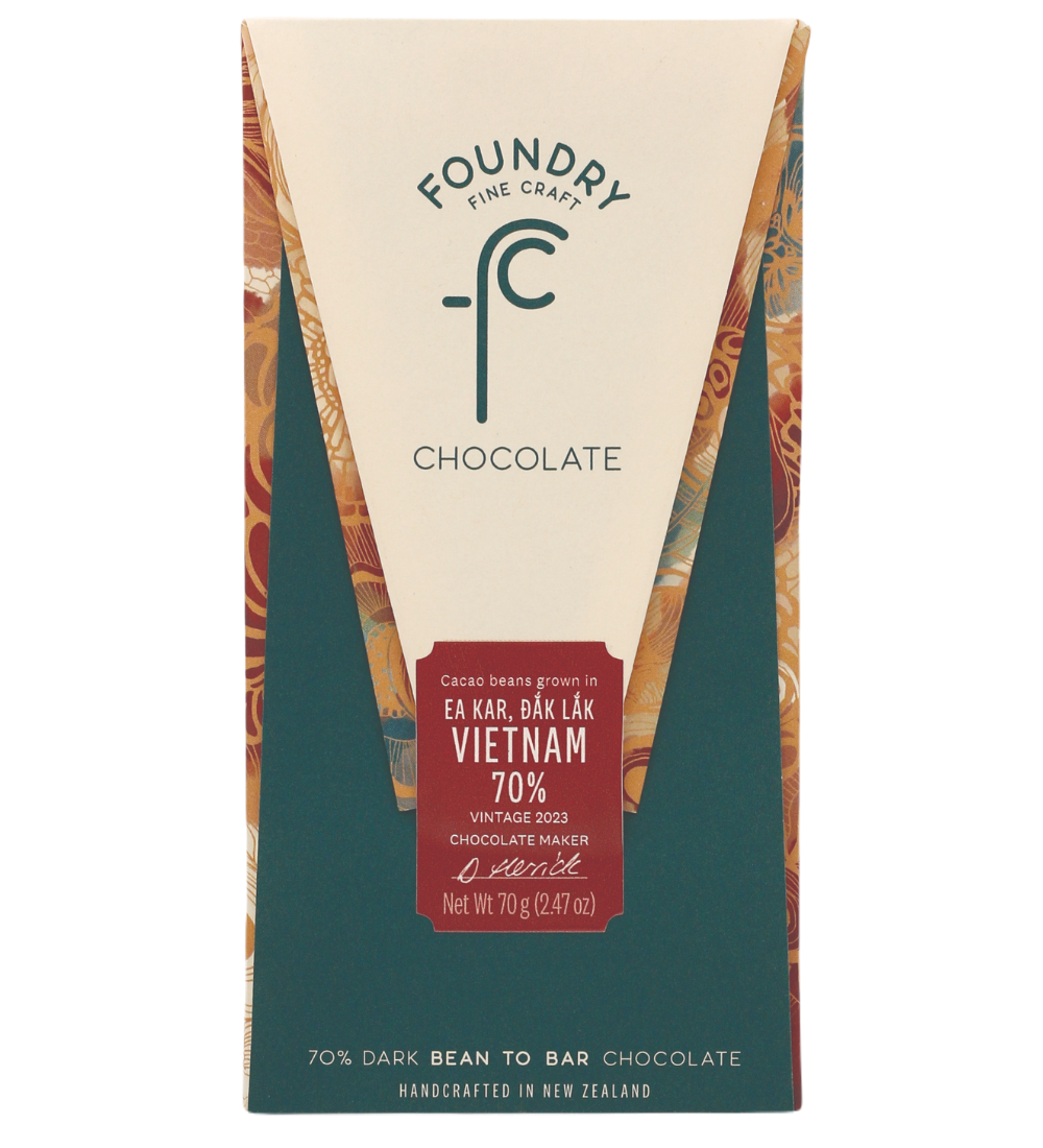 Foundry Chocolate, based in New Zealand, has been recognized with numerous awards, including being crowned Champion at the NZ Outstanding Food Producer Awards and earning multiple gold medals at the Academy of Chocolate Awards in London. Foundry’s dedication to quality and sustainability has also earned them the prestigious Snail of Approval from Slow Food's Auckland chapter. This recognition has led to regular showcases on TV3, TVNZ, and Radio New Zealand. David, Foundry’s founder and chocolate maker, is an engineer by trade. His passion for precision and craftsmanship informs the rigorous standards and attention to detail that defines Foundry. Sourcing only the finest quality cacao beans from ethical and sustainable farms, his bars highlight the unique flavours and terroir of the beans' origins using just two ingredients: cacao and organic cane sugar. The elegant packaging, designed by David’s wife Janelle, perfectly complements the purity and integrity of the chocolate inside. As one journalist put it, “the anticipation of opening each resealable parcel is like unwrapping gifts on Christmas morning.”