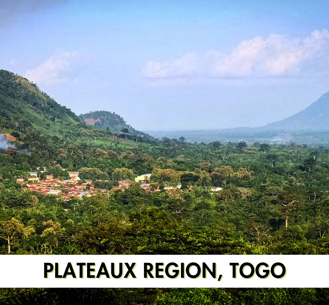 Shop More Pump StreetThe Plateaux Region, the largest of Togo's five regions, stretches along the border with Ghana and is home to Mount Agou, the country's highest peak at 986 meters. This area is part of the Atakora range, a spur of mountains that extends into neighboring Benin, often referred to locally as the Togo Mountains. Historically, the region is populated by the Ewe people, with communities that took in Adangme refugees fleeing slave traders in the 17th century. Mount Agou has long been a symbol of resilience: Ashanti forces attempted to conquer it in 1870 but were repelled by villagers, and remnants of German and French military installations from colonial and World War II eras still stand as testaments to this history. The slopes are dotted with villages and lush fields where cocoa and coffee thrive, interspersed with banana and other fruit trees. Much of the cocoa on this website comes from the Kekeli Cooperative, a women-founded and owned collective of over 100 smallholder farmers committed to transparency and earning organic certification.
